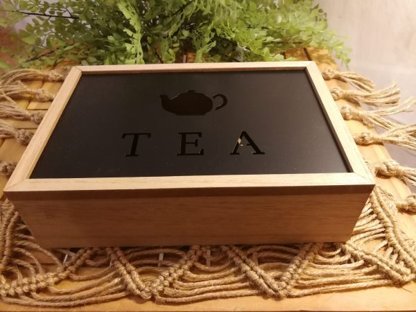 Boîte à infusions bois métal naturel et noir dimensions 24 x 16 x 7 cm