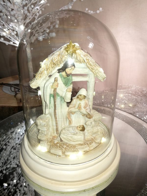 Créche résine beige avec globe et led dimensions 16 x 6 x 25 cm
