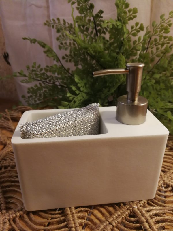 Doseur résine cuisine blanc avec éponge dimensions 15 x 7.5 x 15 cm