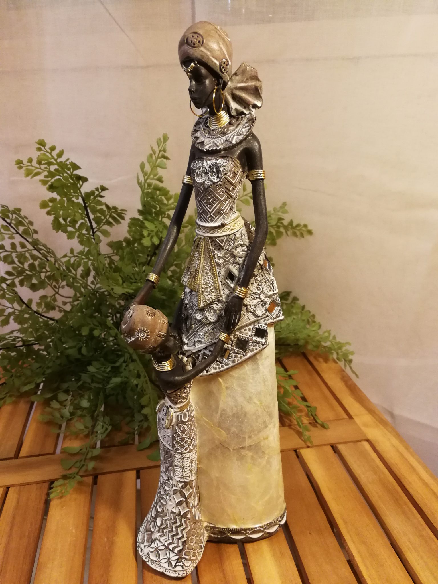 Figure résine africaiene doré avec enfant dimensions 11.5 x 8.5 x 36 cm