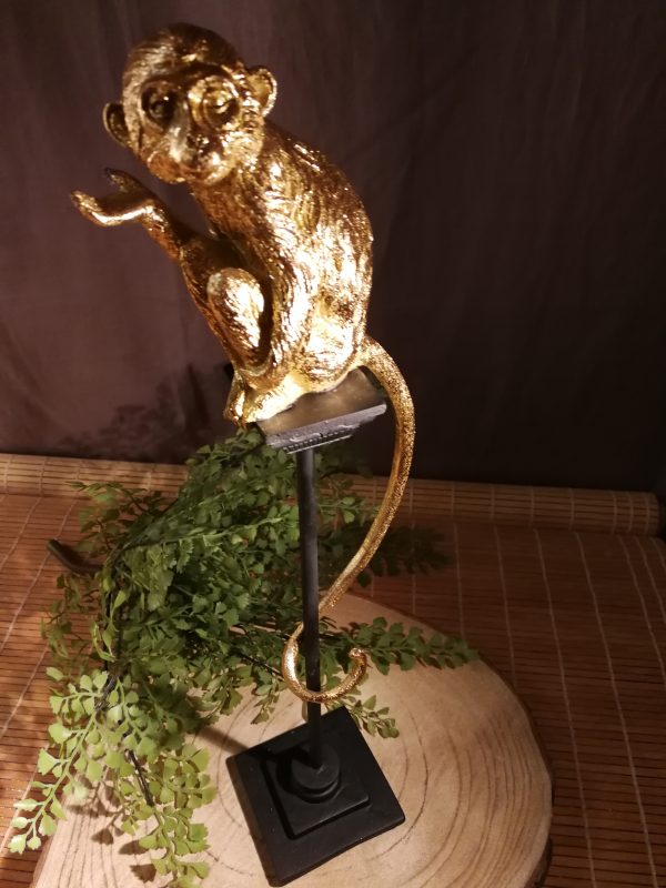 Figure résine singe doré socle métal dimensions 13 x 9 x 45.5 cm