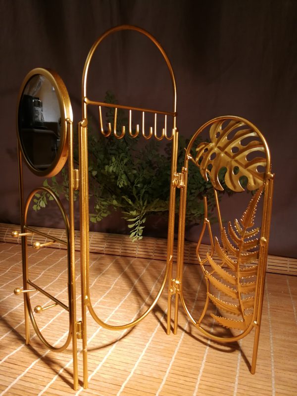 Soyez le premier à laisser votre avis sur “Porte bijoux métal doré feuilles miroir dimensions 41 x 3 x 39 cm”
