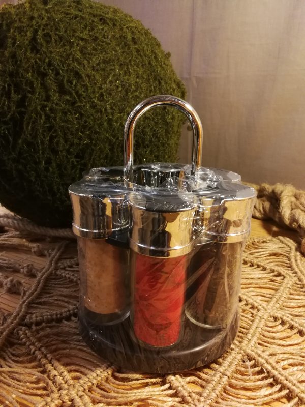 Soyez le premier à laisser votre avis sur “Support épices set de 6 verre socle argenté et noir dimensions 15.5 x 15.5 x 20.5 cm”
