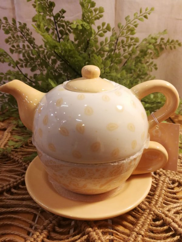 Théiére dolomite jaune pâle avec joli motif dans la tasse dimensions 18 x 13 x 15 cm 750 ml
